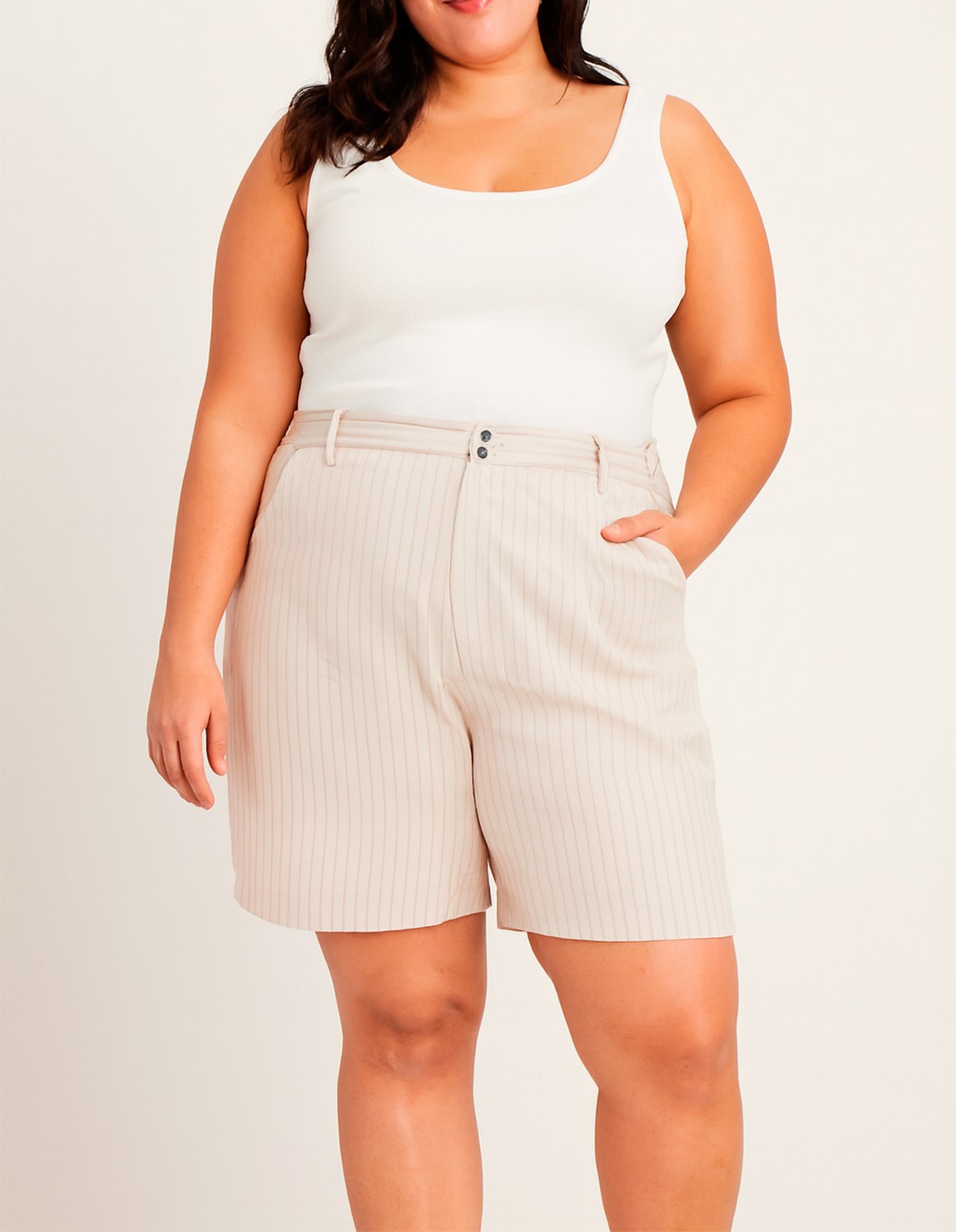 A Bermuda Fiore e a uniao perfeita entre elegancia e conforto para mulheres que valorizam estilo com liberdade de movimento. Confeccionada em tecido de alfaiataria leve e estruturado, ela possui caimento impecavel que valoriza as curvas com sofisticacao. O design moderno conta com cintura media, fechamento frontal com botao duplo e ziper, alem de bolsos funcionais que trazem praticidade ao dia a dia.COMPOSICAO:94% POLIESTER 5% ELASTANO 1% VISCOSE FORRO 100% POLIESTER PARA MAIS INFORMACOES ENTRE EM CONTATO CONOSCO PELO WHATSAPP