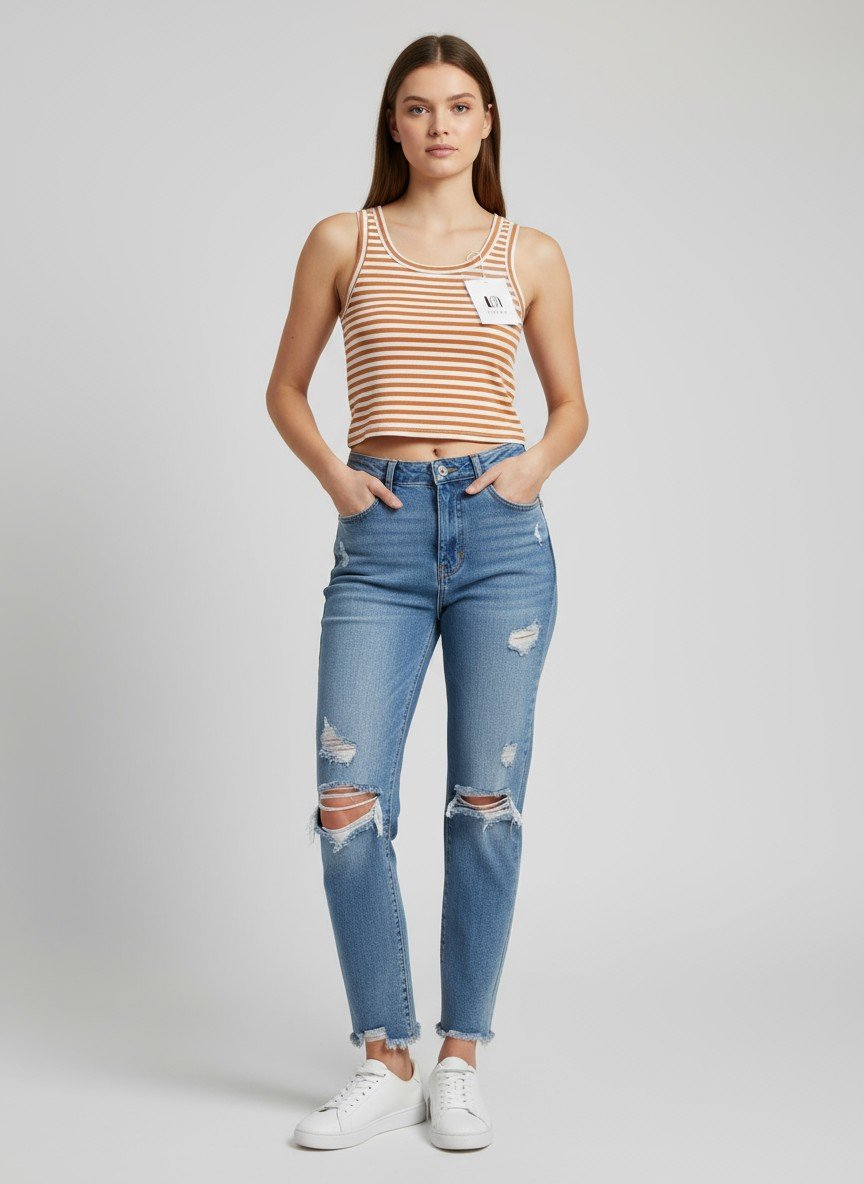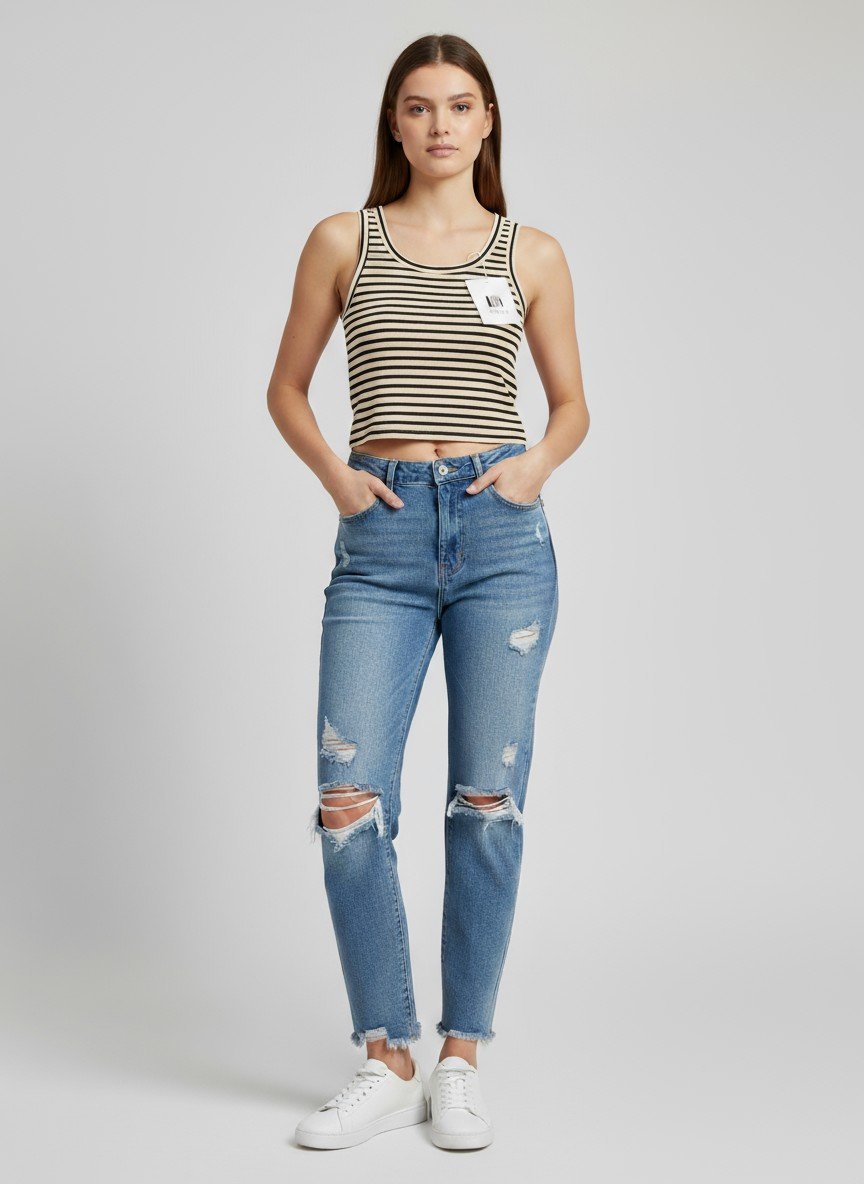 O Cropped Feminino Listrado e a peca ideal para compor looks modernos e despojados. Com estampa de listras horizontais e decote frontal em gota, ele traz um toque de descontracao ao visual. Feito em malha canelada, garante um ajuste confortavel ao corpo, sendo perfeito para usar com shorts ou saias de cintura alta. Uma escolha pratica e cheia de estilo para os dias quentes.