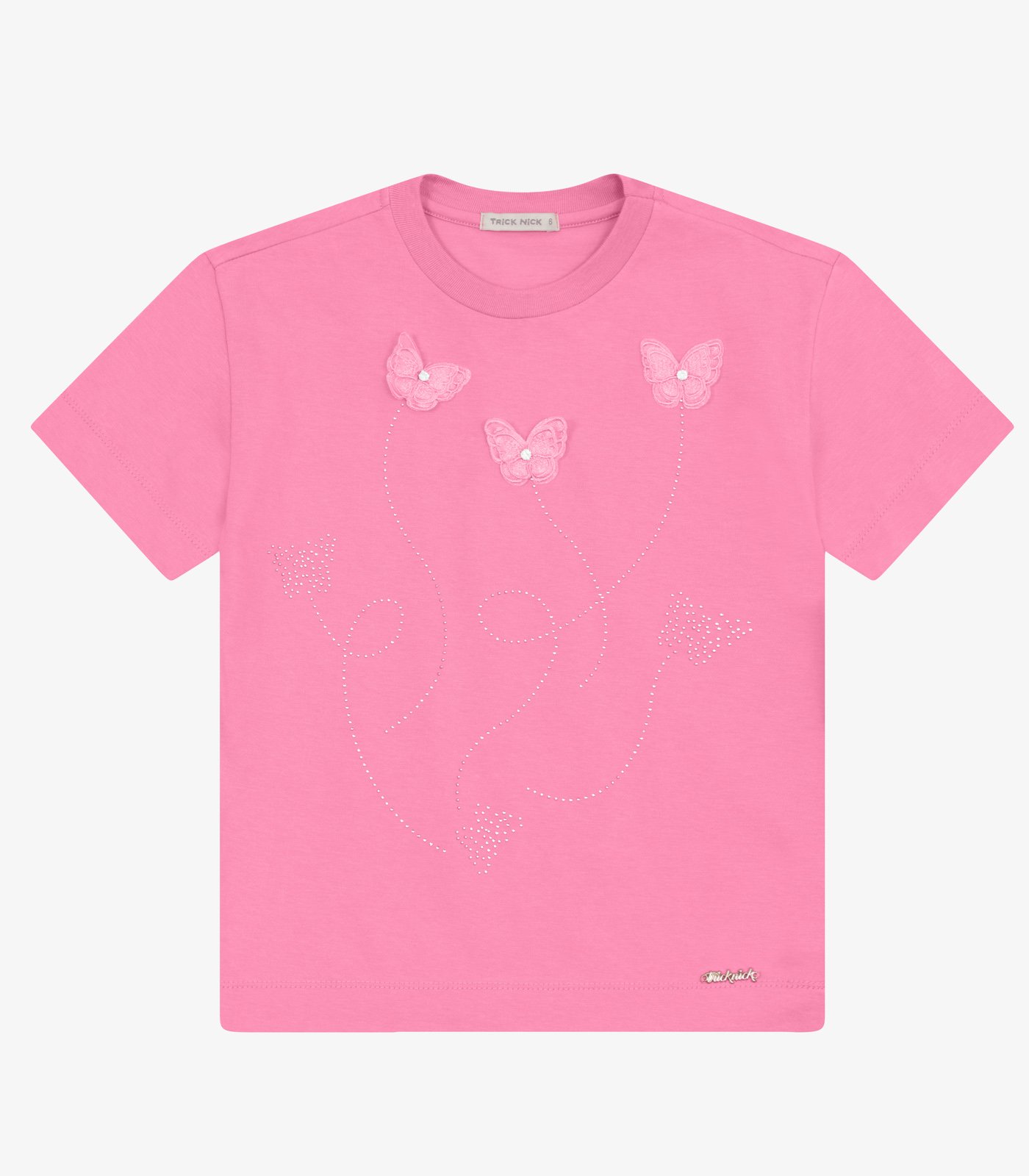 Camiseta feminina Infantil Trick Nick confeccionado em Meia Malha, leve e delicado. Possui aviamento decorativo e strass. A barra tem bainha fina que valoriza o caimento. Ideal para ocasioes especiais com muito estilo e conforto.COMPOSICAO:PECA TOTAL 100% ALGODAOPARA MAIS INFORMACOES ENTRE EM CONTATO CONOSCO PELO WHATSAPP