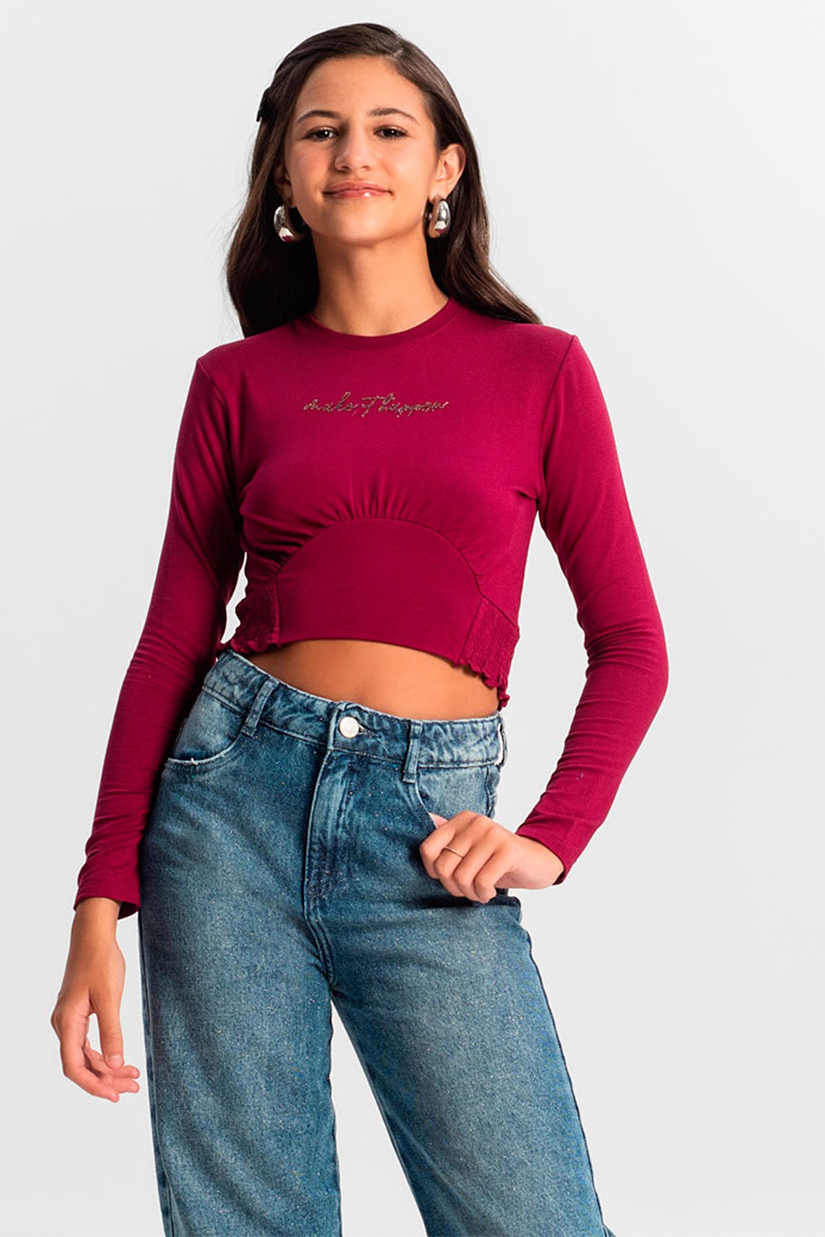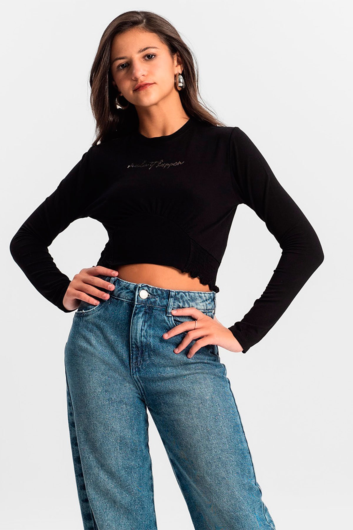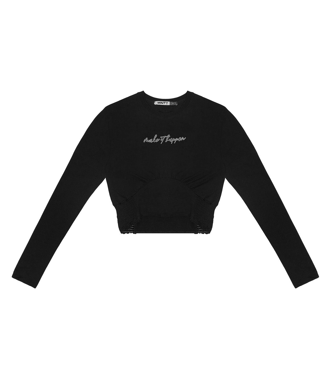CuidadosSeta que mostra o conteudoCaracteristicasSeta que mostra o conteudoEstiloCasualGeneroJuvenilEstacaoInvernoCorPretoMedidas do ProdutoSeta que mostra o conteudoMedidas aproximadas da frente da peca:Comprimento 14: 40,5 cm | 16: 42,5 cm | 18: 44,5 cm | 20: 46,5 cmLargura 14: 39,5 cm | 16: 41,5 cm | 18: 43,5 cm | 20: 45,5 cmComprimento manga 14: 55 cm | 16: 57 cm | 18: 59 cm | 20: 61 cmPeca medida de lateral a lateral. Sugerimos comparar com alguma peca sua.Descricao do produtoA Blusa Juvenil Manga Longa Minty e uma peca cheia de estilo e conforto. Confeccionada em molecotton de viscose, oferece suavidade e leveza. O decote em friso da um toque delicado, enquanto a estampa localizada com esfera foil traz um brilho sofisticado. O franzido abaixo do busto valoriza a silhueta, e o detalhe com lastex nas laterais garante um ajuste perfeito. Ideal para quem busca um look moderno, confortavel e cheio de personalidade.Composicao:PECA TOTAL 3% ELASTANO 97% VISCOSE