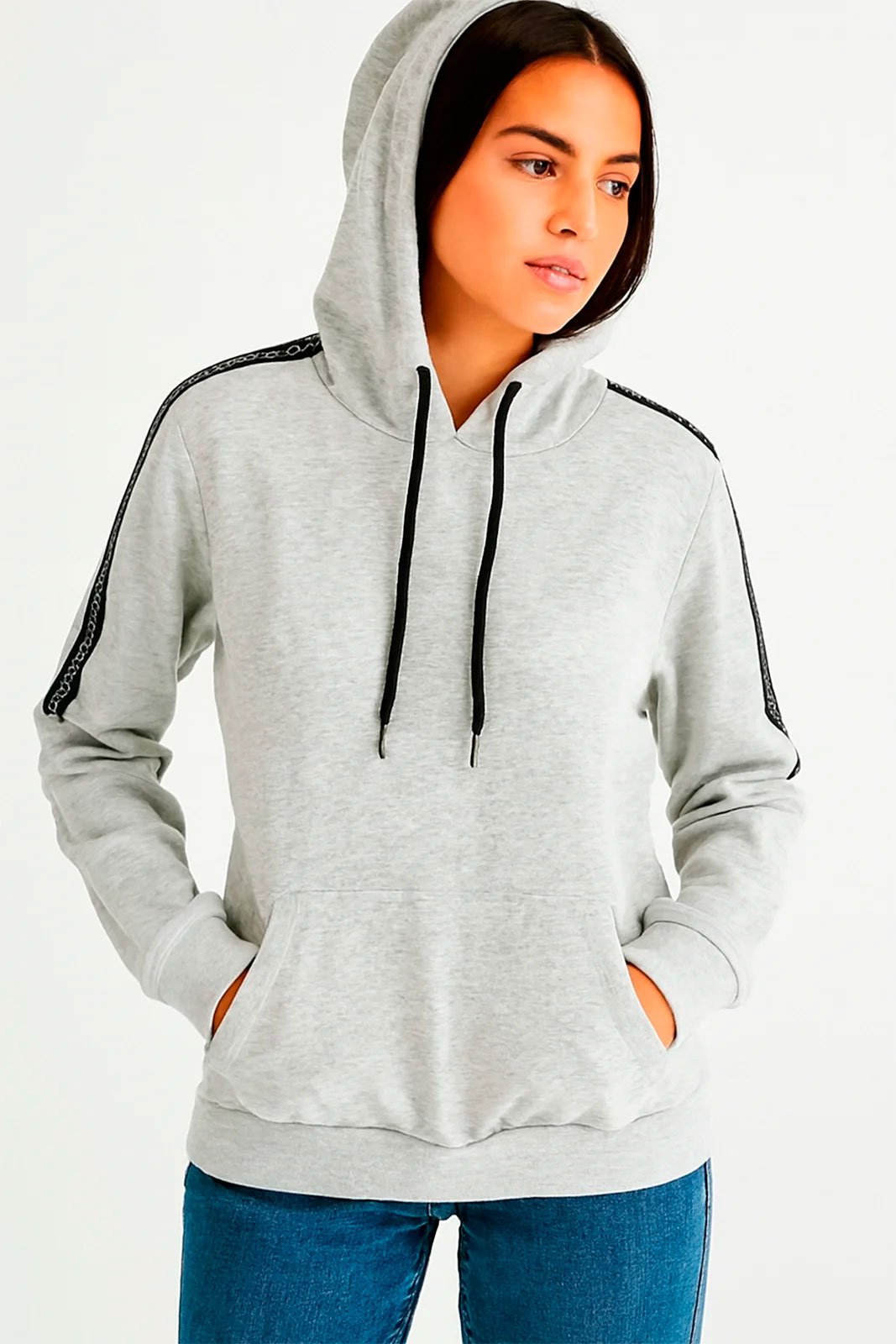 Blusao juvenil em moletom macio, ideal para os dias mais frios. Modelo com capuz e cordao contrastante, oferecendo ajuste pratico e visual moderno.Possui bolso canguru funcional, perfeito para aquecer as maos e facilitar o dia a dia. As mangas contam com faixa lateral aplicada, agregando estilo esportivo a peca.Punhos e barra em ribana garantem melhor ajuste ao corpo e mais conforto no uso.Versatil e facil de combinar, e uma opcao ideal para compor looks casuais juvenis com conforto e personalidade.COMPOSICAO:98% ALGODAO 2% POLIESTER PARA MAIS INFORMACOES ENTRE EM CONTATO CONOSCO PELO WHATSAPP