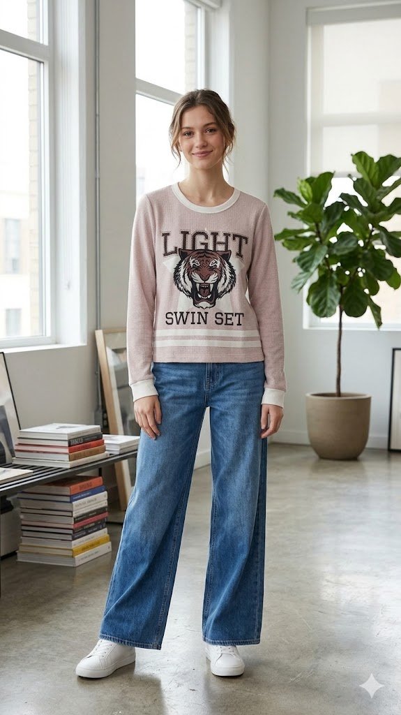 Este blusao combina o estilo varsity com uma pegada urbana moderna. Confeccionado em malha de toque macio, ele e perfeito para dias de meia-estacao ou para compor camadas no inverno.Design Exclusivo: Apresenta uma estampa central imponente de tigre com a inscricao “LIGHT SWIN SET”, garantindo personalidade ao visual.Detalhes de Estilo: Possui gola redonda e punhos em ribana contrastante (off-white), que alem de proporcionar melhor ajuste, remete ao visual esportivo classico.Modelagem Confort: Shape levemente solto no corpo, ideal para combinar com calcas pantalonas, jeans de cintura alta ou leggings.Versatilidade: A cor rosa pastel (nude) e neutra e facil de combinar, transitando do ambiente casual ao escolar com facilidade.Especificacoes:Cor: Rosa Pastel / Off-white.Manga: Longa com punho.Gola: Redonda (Careca).Sugestao de Look: Use com jeans wide leg e tenis branco para um visual blogueira.73%ALGODAO23%POLIESTER4%POLIAMIDA