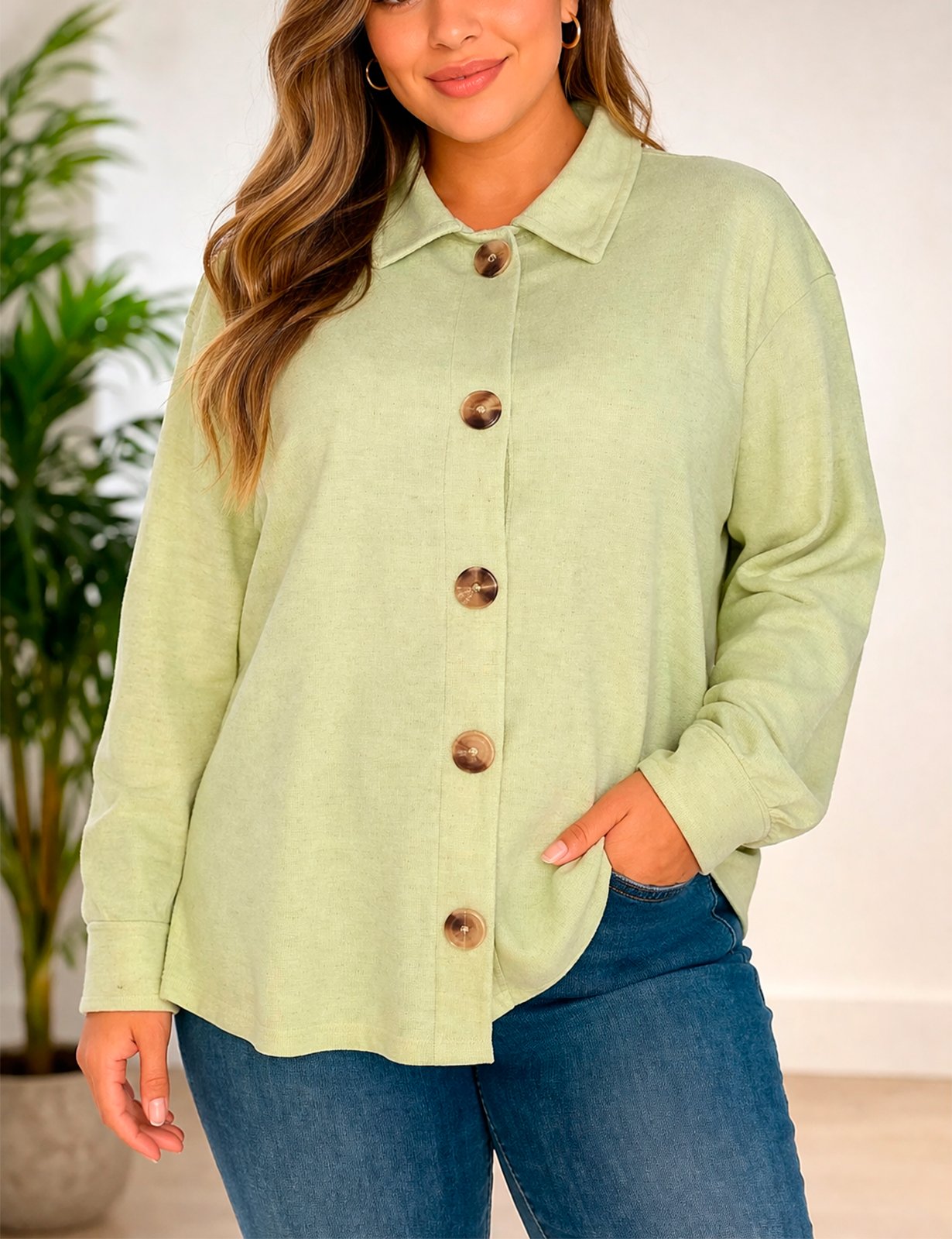 A camisa feminina Rovitex e perfeita para quem busca um visual moderno, confortavel e elegante no dia a dia. Com modelagem soltinha, ela oferece um caimento leve que valoriza o corpo sem marcar, garantindo liberdade de movimento e bem-estar.Confeccionada em tecido macio e agradavel ao toque, a peca conta com mangas longas e fechamento frontal por botoes, alem de botoes maiores que trazem um charme especial ao design. A gola classica completa o visual com um toque sofisticado.COMPOSICAO65% POLIESTER 29% ALGODAO 6% LINHOPARA MAIS INFORMACOES ENTRE EM CONTATO CONOSCO PELO WHATSAPP
