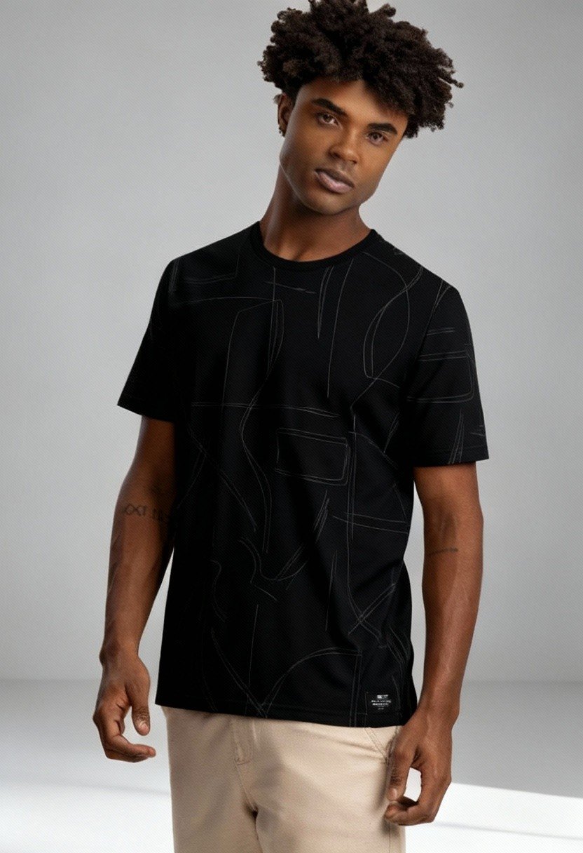 CAMISETA MASCULINA MALHA PENTEADA GEOMETRICA FICO B5000