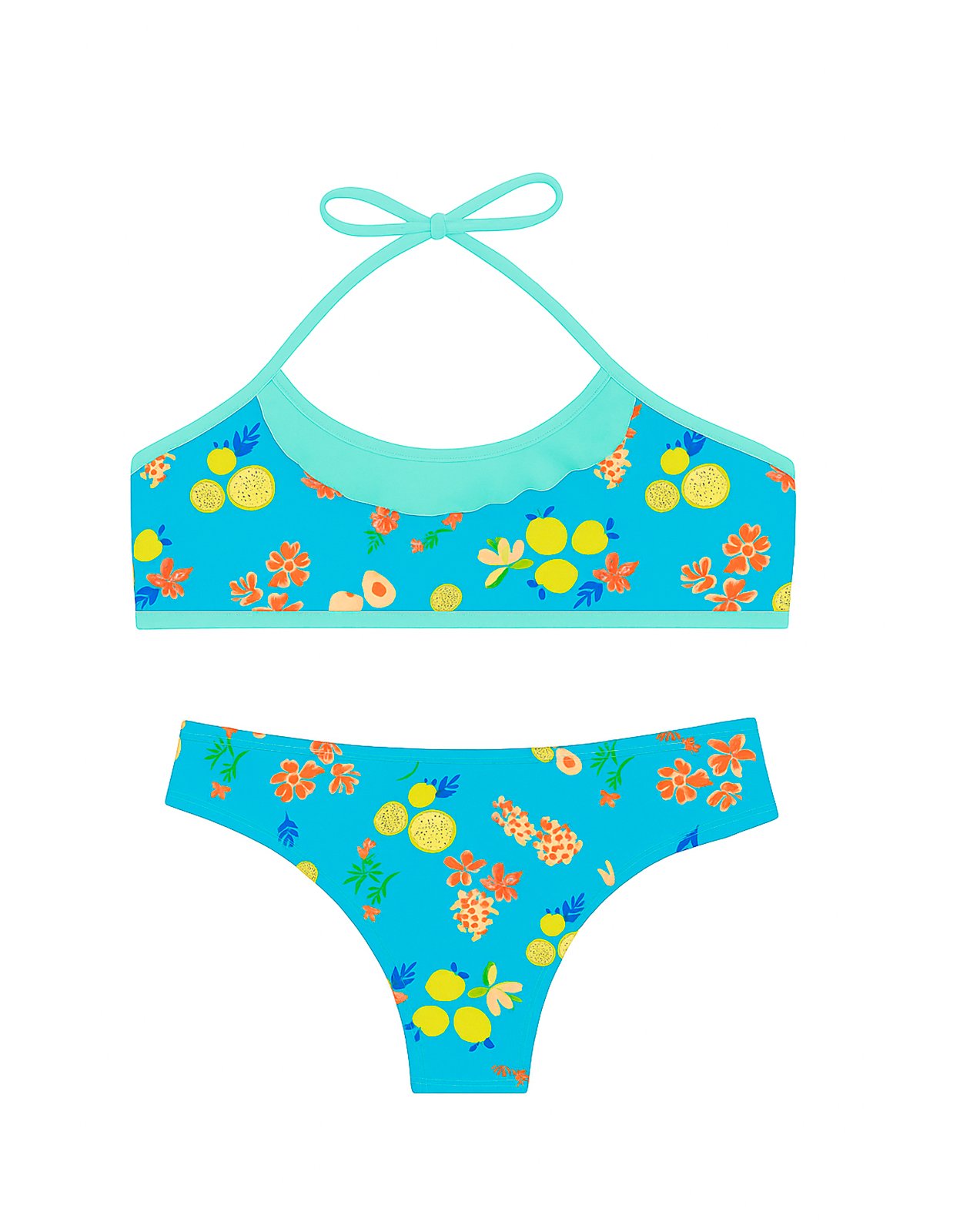 O conjunto biquini top e calcinha e perfeito para acompanhar as criancas nos dias de diversao ao sol. O top possui detalhe em babado e alcas em tiras para amarracao, permitindo regulagem para melhor ajuste. Acompanha calcinha com modelagem confortavel. Confeccionado em tecido com protecao UV tecelada diretamente no fio, garante mais seguranca durante os momentos de lazer na praia, piscina ou passeios ao ar livre.COMPOSICAO:84% POLIESTER 16% ELASTANOPARA MAIS INFORMACOES ENTRE EM CONTATO CONOSCO PELO WHTSAPP