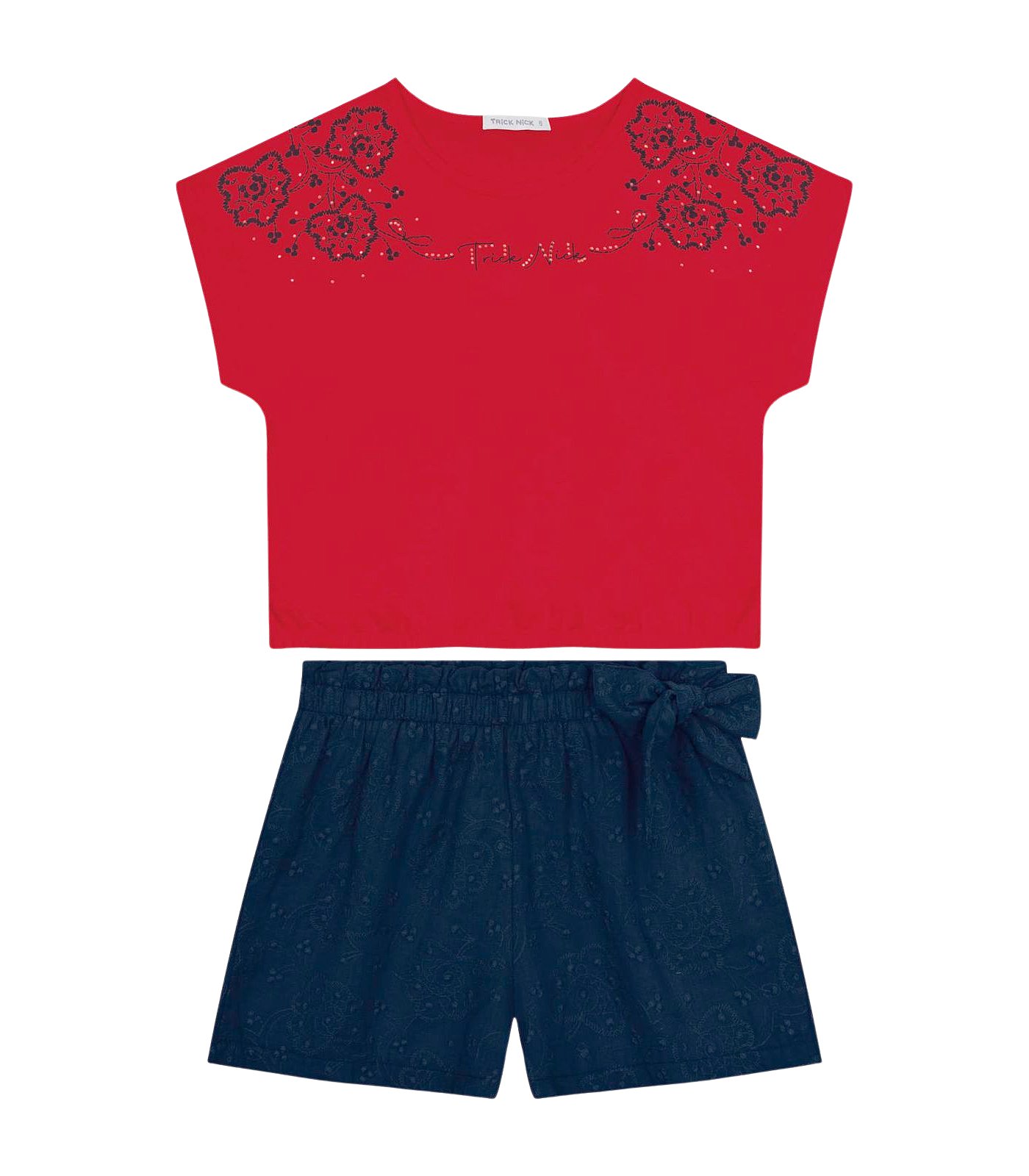 CONJUNTOTrick Nick confeccionado emalgodao Leve, leve e delicado.. A barra tem bainha fina que valoriza o caimento. Ideal para ocasioes especiais com muito estilo e conforto. Blusa 95% de algodao 5% elastano bermuda 100% algodao