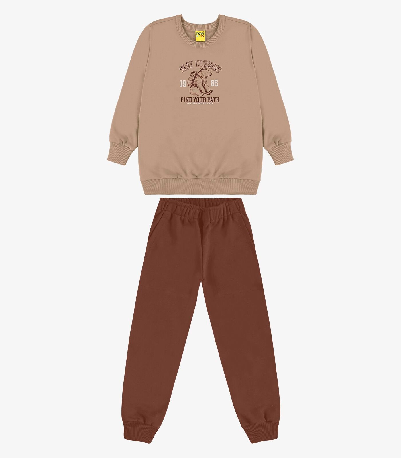 o conjunto blusao e calca moletom rovi kids e a escolha ideal para garantir o conforto e o bem-estar do seu filho nos dias mais frios. confeccionado inteiramente em moletom felpado, ele proporciona um toque extremamente macio e aconchegante, mantendo a crianca aquecida sem abrir mao da liberdade de movimento. o blusao e a calca tem um caimento perfeito para a rotina de brincadeiras e passeios. a qualidade do moletom felpado assegura durabilidade e conforto prolongado. um conjunto essencial!COMPOSICAOBLUSAO PECA TOTAL 100% ALGODAO – CALCA PECA TOTAL 100% ALGODAOPARA MI INFORMACOES CONTATE O WHATSAPP