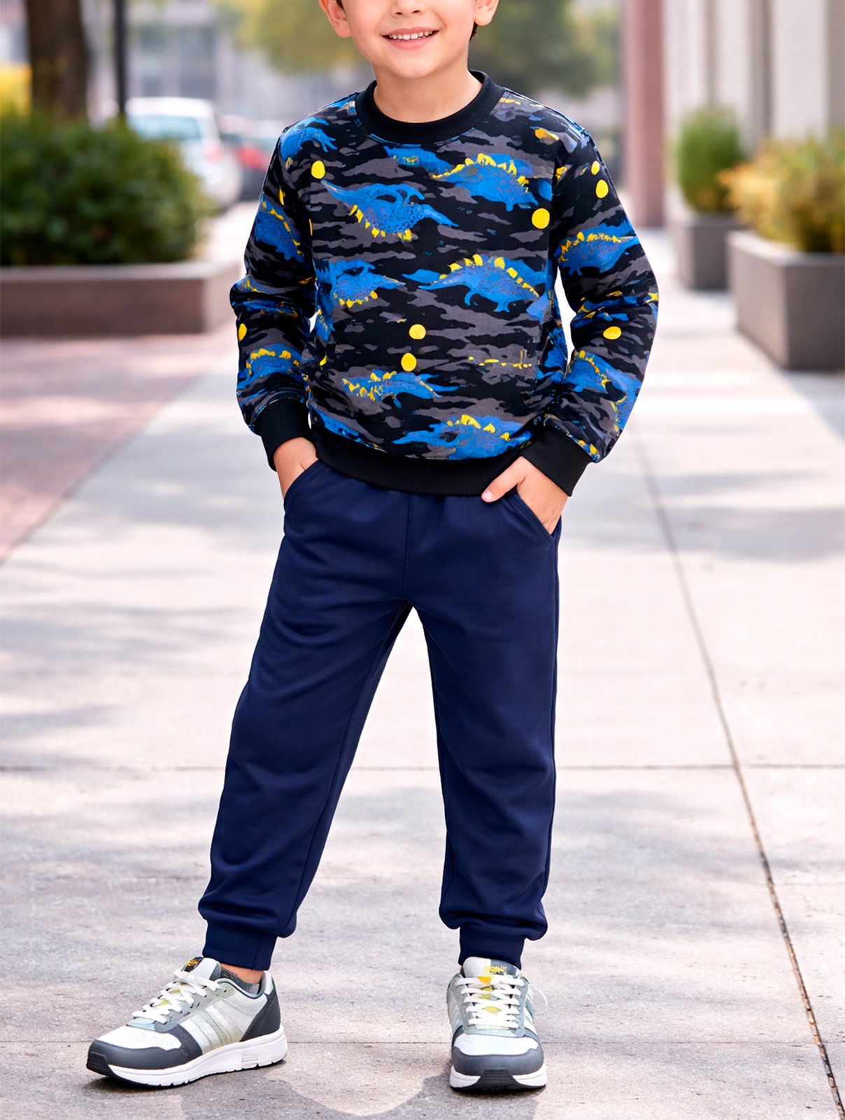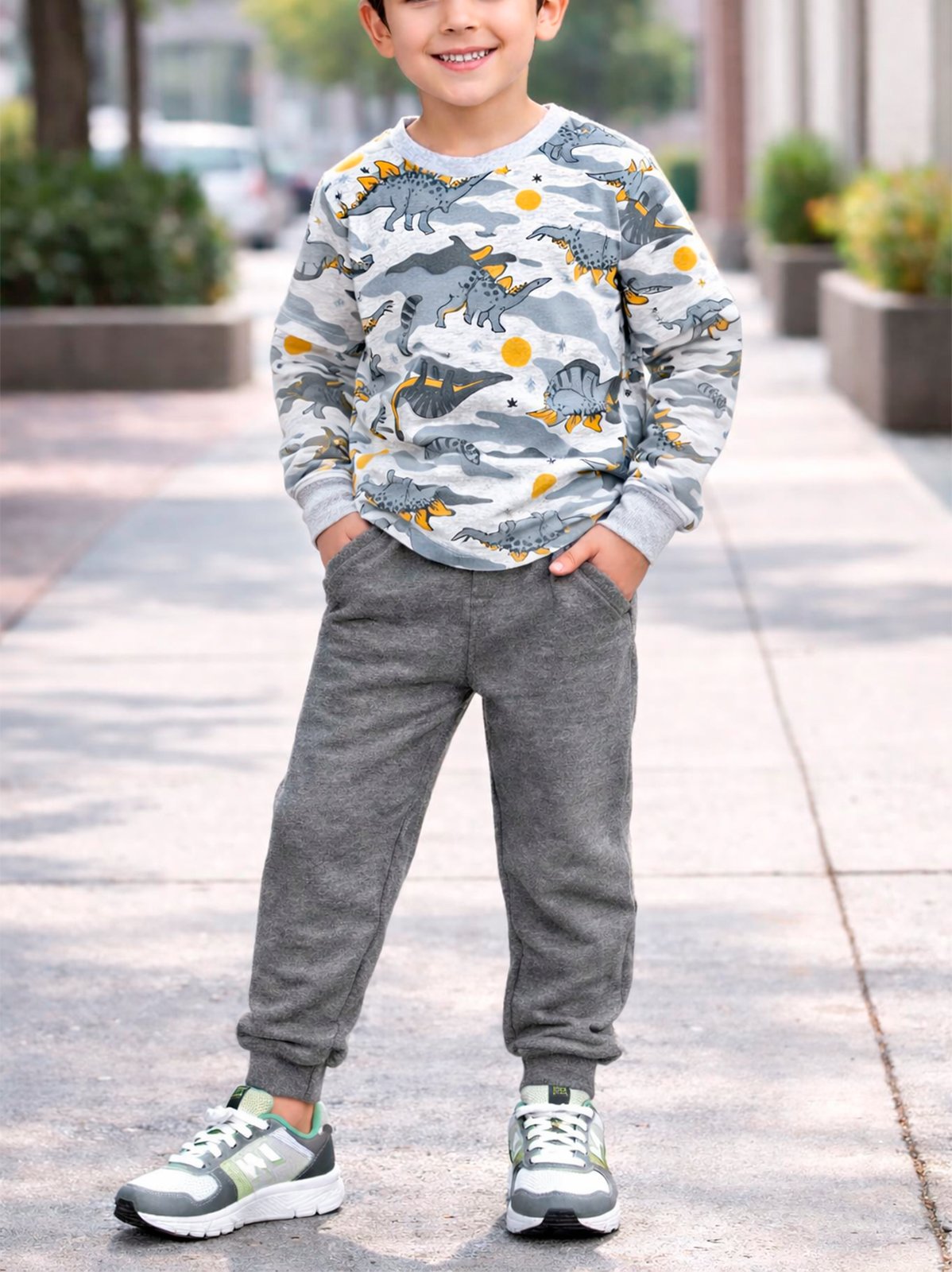 Conjunto infantil masculino confeccionado em moletom macio e confortavel, ideal para os dias mais fresquinhos. A blusa de manga longa possui estampa divertida de dinossauros, trazendo um visual moderno e alegre. A calca em moletom conta com cos elastico, garantindo melhor ajuste e liberdade de movimentos.Perfeito para o dia a dia, passeios e momentos de lazer, oferecendo conforto, estilo e praticidade para os pequenos.COMPOSICAO:100% ALGODAOPARA MAIS INFORMACOES ENTRE EM CONTATO CONOSCO PELO WHATSAPP