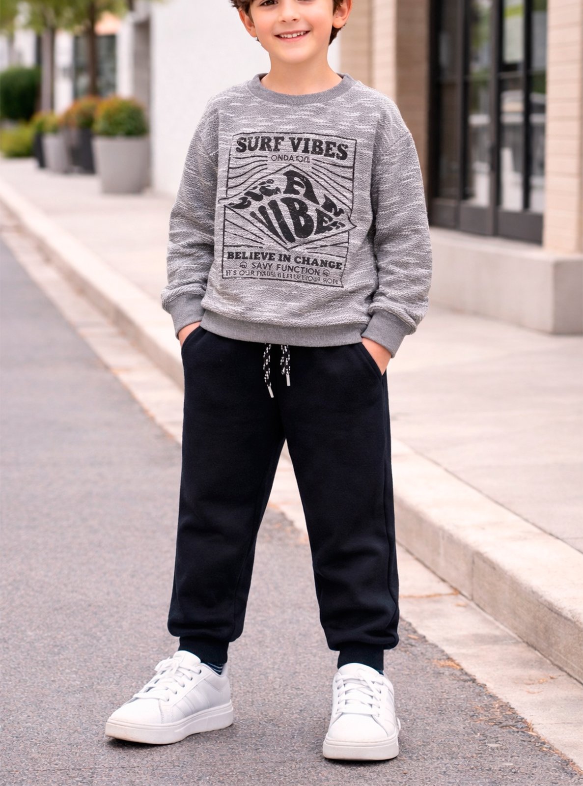 O Conjunto Infantil Onda Kids OK365 e a escolha ideal para garantir conforto, estilo e praticidade no dia a dia das criancas. Confeccionado em moletom de toque macio e aconchegante, e perfeito para os dias mais frios, oferecendo bem-estar e liberdade de movimentos.O blusao possui modelagem confortavel, gola redonda, punhos e barra ajustados, alem de estampa frontal moderna com tematica urbana/surf, que traz um visual descolado e atual. A calca lisa complementa o conjunto com otimo caimento, cos com elastico e cordao decorativo, garantindo ajuste confortavel ao corpo.Versatil e facil de combinar, o conjunto e ideal para passeios, escola ou momentos de lazer, unindo qualidade, conforto e o estilo casual caracteristico da Onda Kids.CMPOSICAO:50% ALGODAO 50% POLIESTERPARA MAIS INFORMACOES ENTRE EM CONTATO CONOSCO PELO