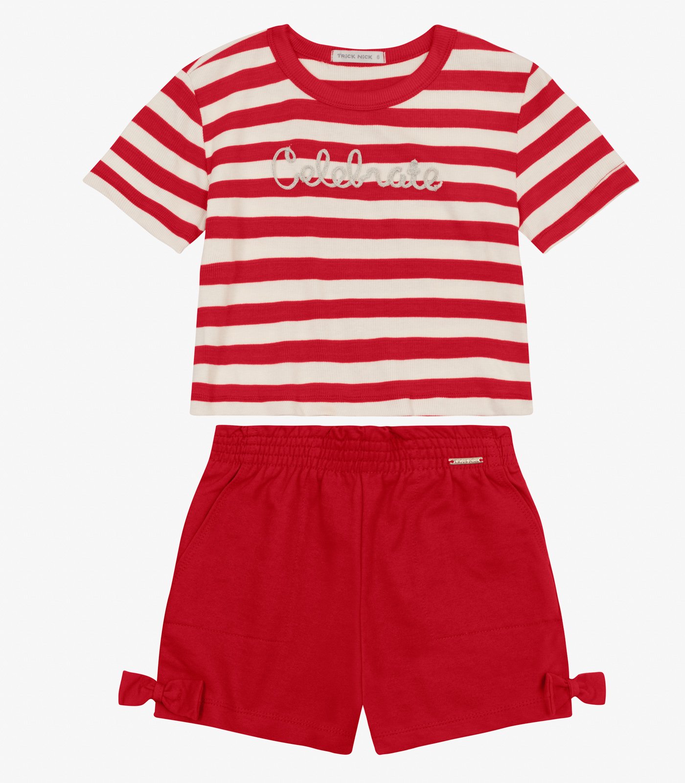 O conjunto blusa com shorts Trick Nick e confeccionado em ribana 2×1, tecido com excelente elasticidade, conforto e ajuste ao corpo. A blusa possui delicado bordado em cordel, que adiciona um toque artesanal e charmoso a peca. O shorts completa o look com praticidade e estilo, garantindo liberdade de movimentos para o dia a dia. Ideal para momentos de lazer, e um conjunto leve, moderno e cheio de personalidade para as criancas.COMPOSICAO;PECA TOTAL 100% ALGODAOPARA MAIS INFORMACOES ENTRE EM CONTATO CONOSCO PELO WHATSAPP
