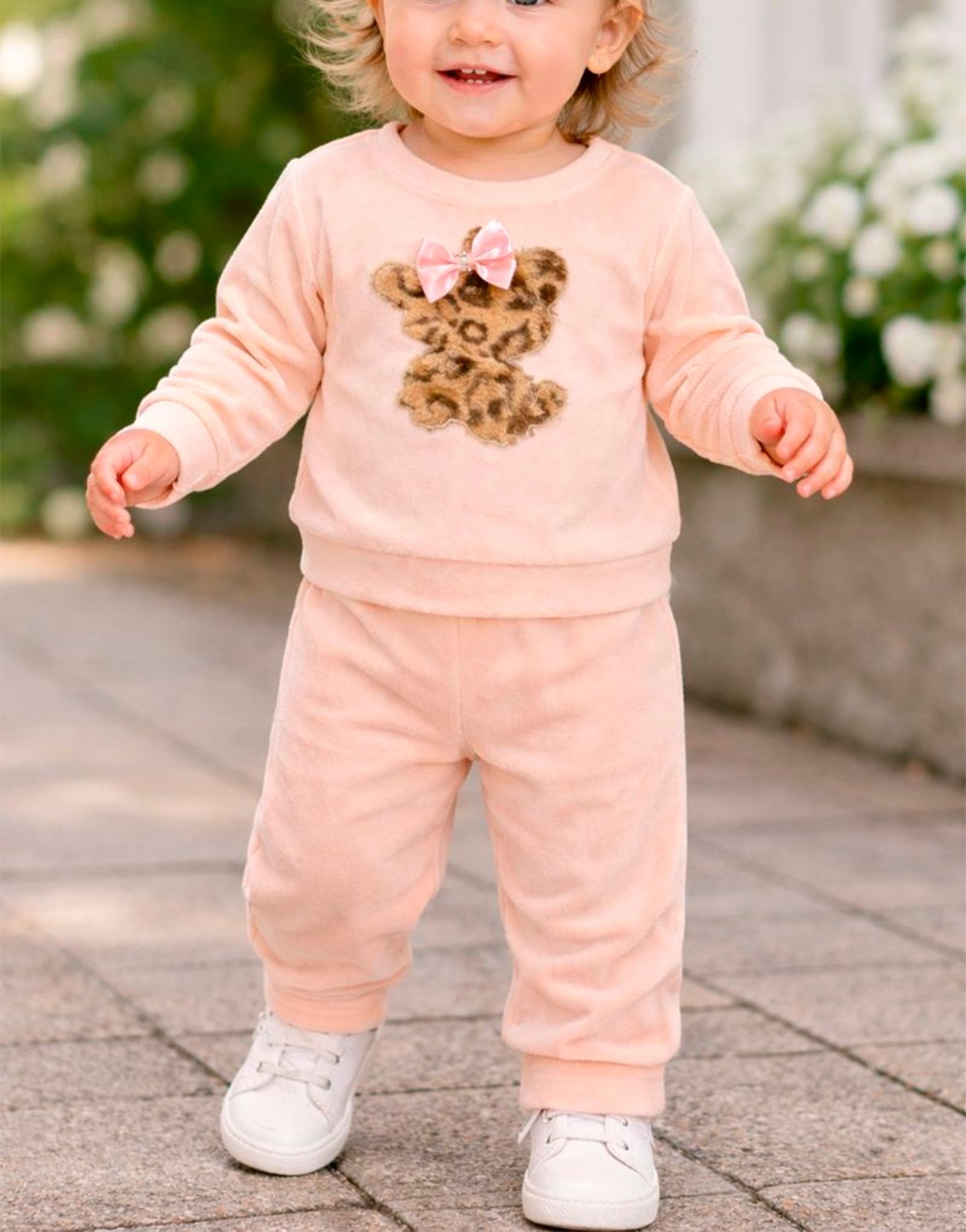 Conjunto infantil feminino confeccionado em tecido plush de alta qualidade, macio e confortavel, perfeito para os dias mais fresquinhos. O conjunto e composto por:?? Blusa de manga longaCor: Rosa claro / pessegoEstilo: corte moderno e confortavelDetalhe frontal com aplicacao de ursinho em pelucia estampada e laco decorativo em cetim rosa, conferindo um toque delicado e charmosa.?? Calca em plush combinandoCor: rosa claroCos elastico confortavelPunhos nos tornozelos, garantindo um ajuste seguro e acabamento delicado? Caracteristicas do tecido:Material: plush / veludo macio ao toqueAconchegante e ideal para pele sensivel de bebesFacil de vestir e pratico para o dia a dia?? Tamanho apresentado: 1 anoSe quiser, posso adaptar essa descricao para e-commerce, Instagram, ou incluir detalhes de tamanho/medidas!Is this conversation helpful so far?COMPOSICAO:76% ALGODAO 24% POLIESTERPARA MAIS INFORMACOES ENTRE EM CONTATO CONOSCO PELO WHATSAPP