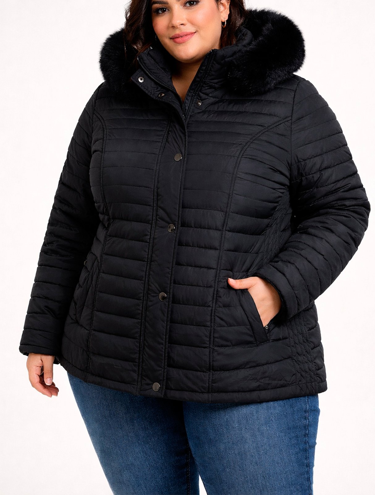 A jaqueta feminina plus size Safira Classic e a escolha ideal para quem busca conforto, estilo e protecao nos dias mais frios. Confeccionada em material acolchoado estilo puffer, possui enchimento termico que garante excelente isolamento e mantem o corpo aquecido.O modelo conta com fechamento duplo, sendo ziper frontal e aba com botoes de pressao sobreposta, proporcionando maior protecao contra o vento e um acabamento mais sofisticado. O capuz e um destaque a parte, com acabamento em pelucia, trazendo charme e aconchego ao visual.COM FORRO EM PELUCIACOMPOSICAO100% POLIESTERPARA MAIS INFORMACOES ENTRE EM CONTATO CONOSCO PELO WHATSAPP