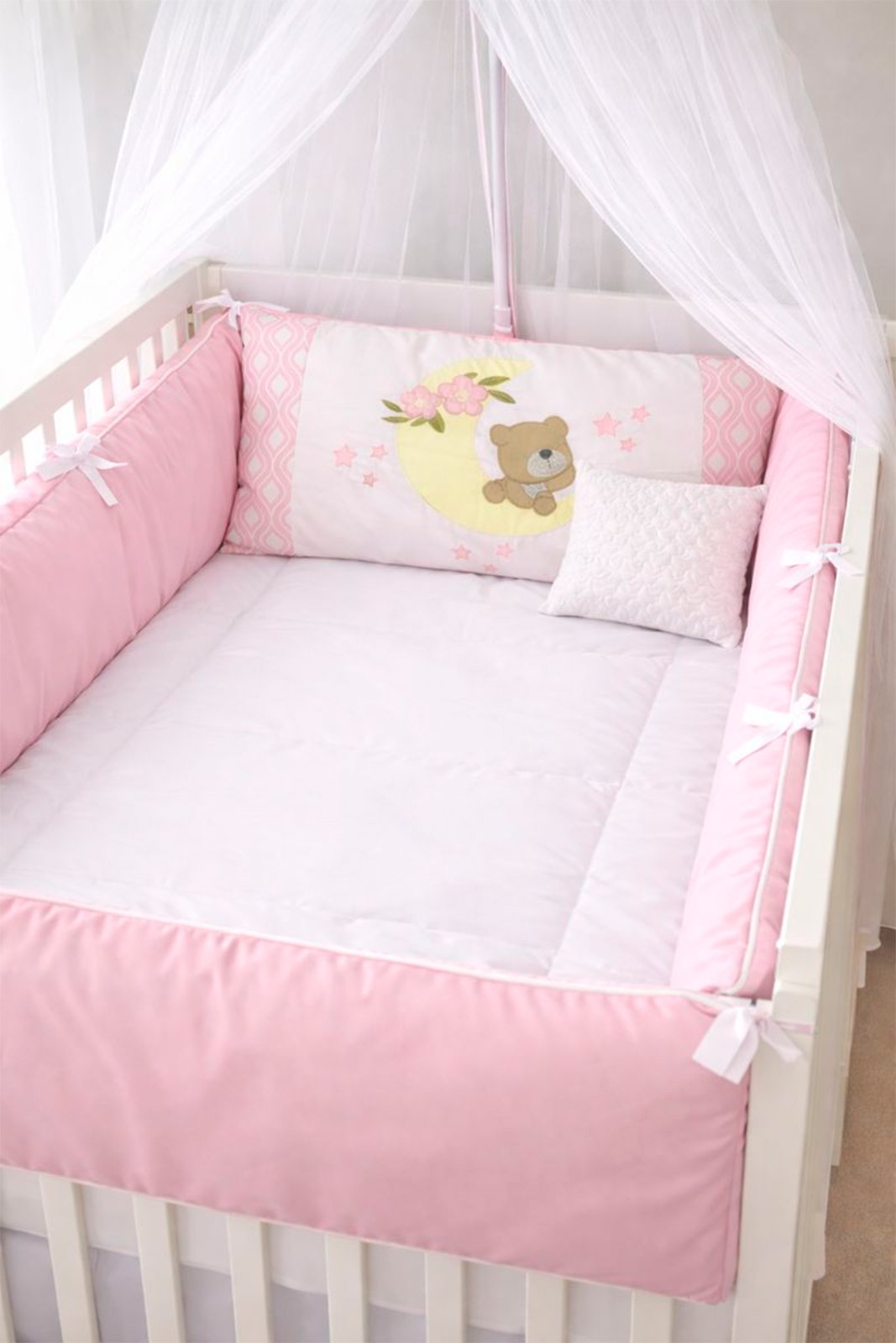 O Kit de Berco 9 pecas estampado oferece seguranca, conforto e charme para o quarto do bebe. Produzido com tecidos macios e delicados, traz protecao durante o sono e um visual encantador ao ambiente. Ideal para acompanhar desde os primeiros dias, proporcionando bem-estar e tranquilidade.COMPOSICAO:1 COBERTOR 062×0422 LATERAIS 134×025 1 LENCOL INF 135x076x0101 FRONHA 33×261 TROCADOR 67×391 TRAVESSEIRO 15×331 MOSQUITEIRO 174×1381 EDREDOM 150×95100% POLIESTER ENCHIMENTO 100% POLIESTERTULE 100% POLIAMIDA PLASTICO 100% PVC PARA MAIS INFORMACOES ENTRE EM CONTATO CONOSCO PELO WHATSAPP