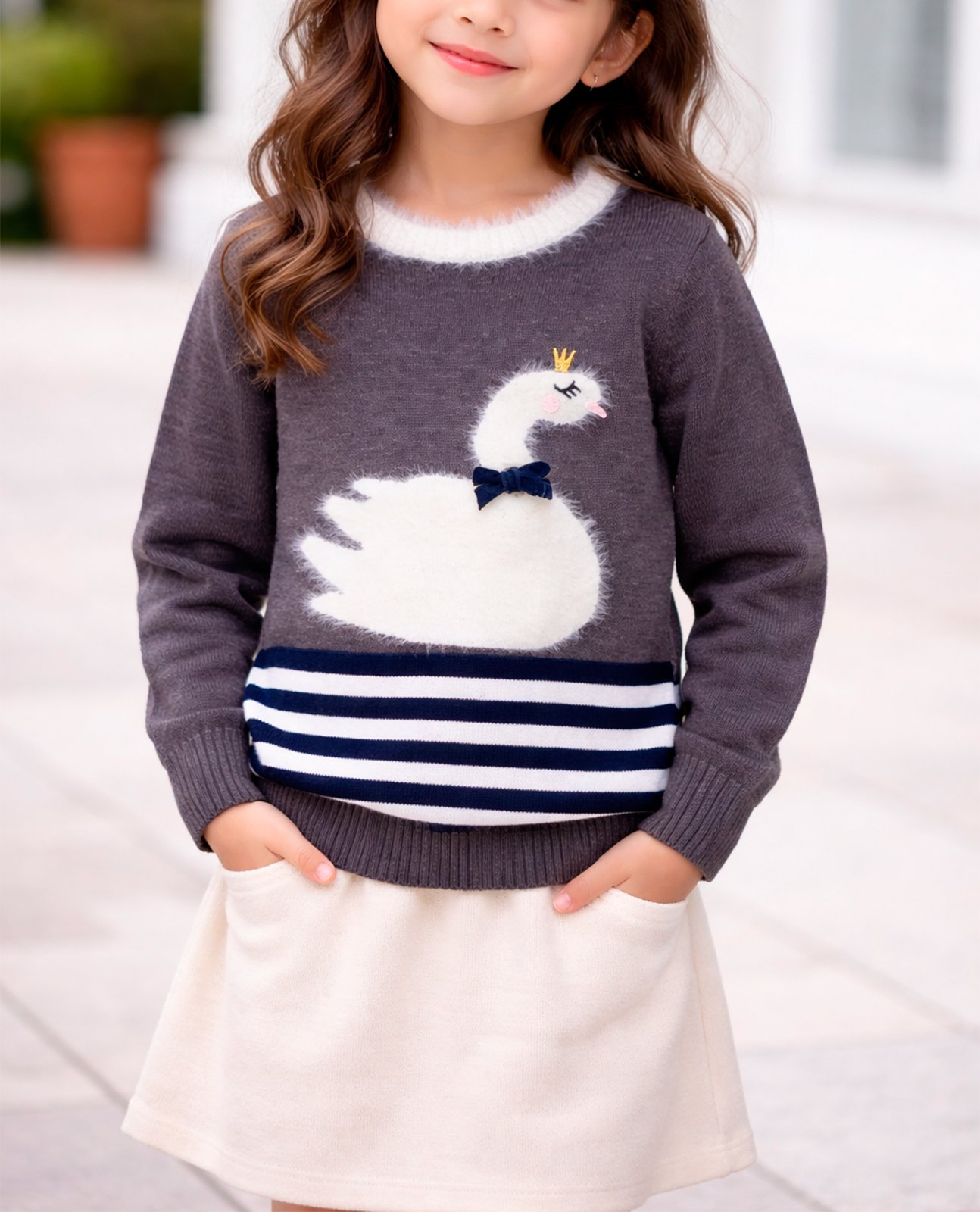 O Sueter Modal Infantil Menina Nick e a combinacao perfeita de delicadeza, conforto e estilo para os dias mais fresquinhos. Confeccionado em modal de toque macio, oferece leveza, excelente caimento e sensacao aconchegante para o dia a dia das pequenas.Com design encantador, a peca traz aplicacao frontal de cisne com detalhes delicados, alem de acabamento especial na gola e padronagem listrada na parte inferior, que acrescenta charme e sofisticacao ao visual.COMPOSICAO48% ALGODAO 41% ACRILICO 11% POLIAMIDAPARA MAIS INFORMACOE ENTRE EM CONTATO CONOSCO PELO WHATSAPP
