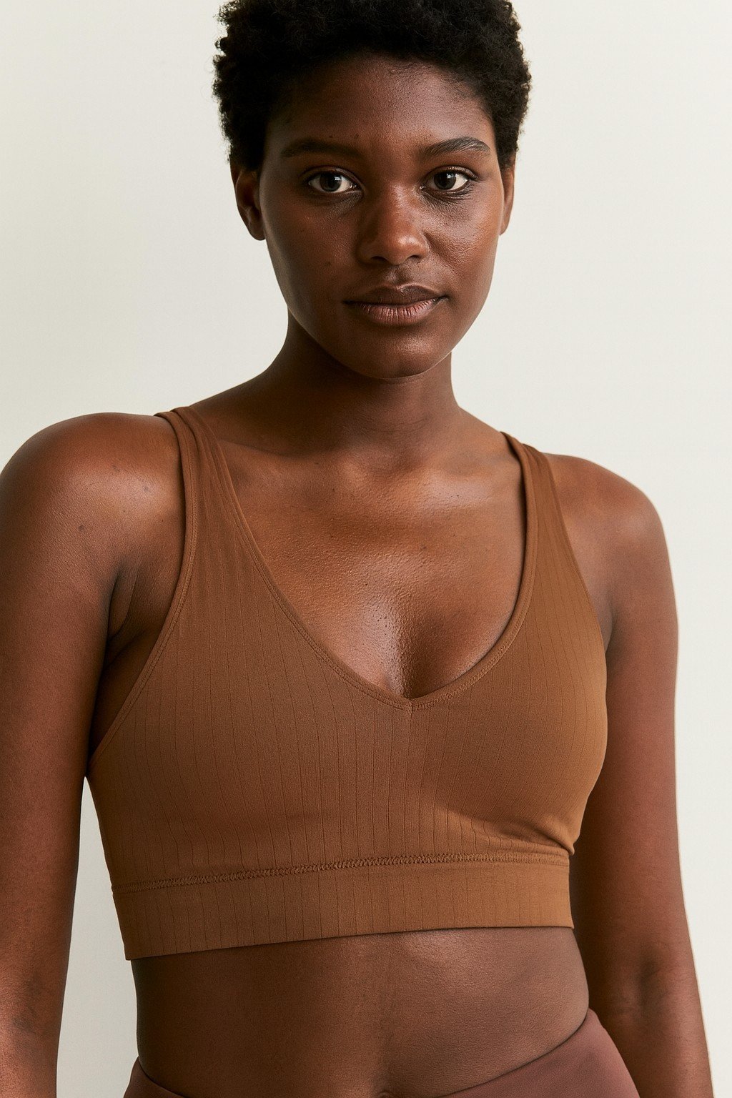 Top feminino ideal para academia e atividades fisicas, confeccionado em tecido canelado de alta elasticidade que proporciona conforto, ajuste perfeito ao corpo e liberdade de movimentos. Possui decote em V que valoriza o busto, alcas largas que oferecem melhor sustentacao e seguranca durante os treinos, alem de barra com elastico reforcado para maior firmeza.Modelo sem costuras aparentes, com toque macio e excelente respirabilidade, garantindo bem-estar ao longo do uso. Versatil, pode ser usado tanto para exercicios quanto em composicoes casuais do dia a dia.composicao:85% poliamida 15% elastanopara mais informacoes entre em contato conosco pelo whatsapp