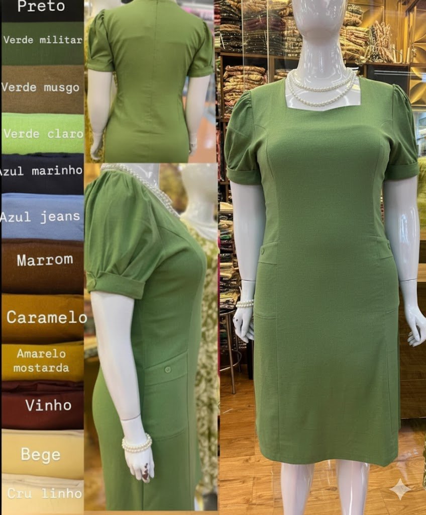 ? Porque voce deve ter um Vestido Alfaiataria?Diversificar o guarda-roupa;Oportunidade de se diferenciar nos eventos;Otimo caimento em todos os tamanhos P, M, G, GG.Tecido ALFAIATARIA ENCORPADO COM FOROEstar sempre dentro da tendencia da moda feminina? Composicao; 96% DE POLIESTER 04% DEELASTANO FORO100 %POLIESTERNUMERO 50busto 63cmCINTURA 58CMCOMPRIMENTO 106CMCOMPRIMENTO 110CM